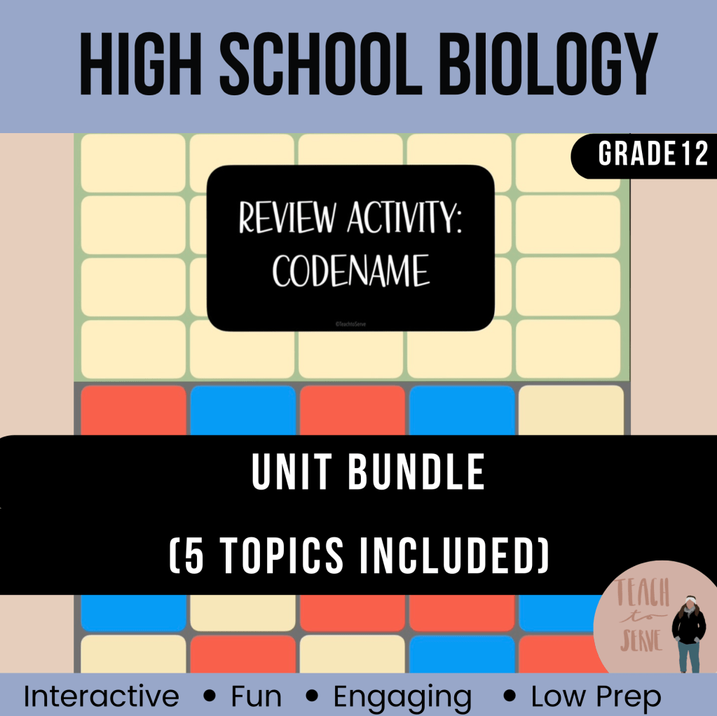 Goal: The spymaster has to come up with a “code name” for their team and their team has to successfully guess the word(s) on the board. This forces the students to make certain connections and associations with the different vocabulary and concepts.