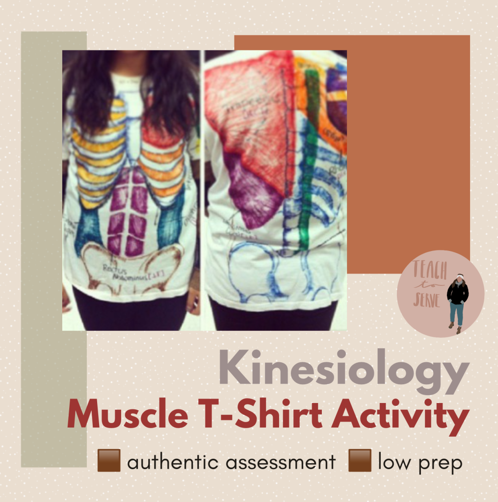 This one is always a hit. Students design their own muscle t-shirts by labeling major muscles, origins, insertions, and functions—right on a t-shirt! It’s a fun, creative way for them to visualize and remember muscle anatomy (and trust me, they get competitive about it).