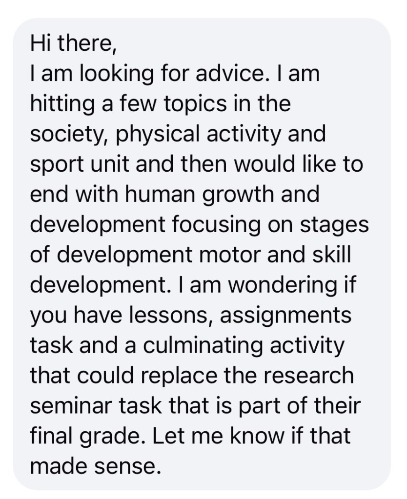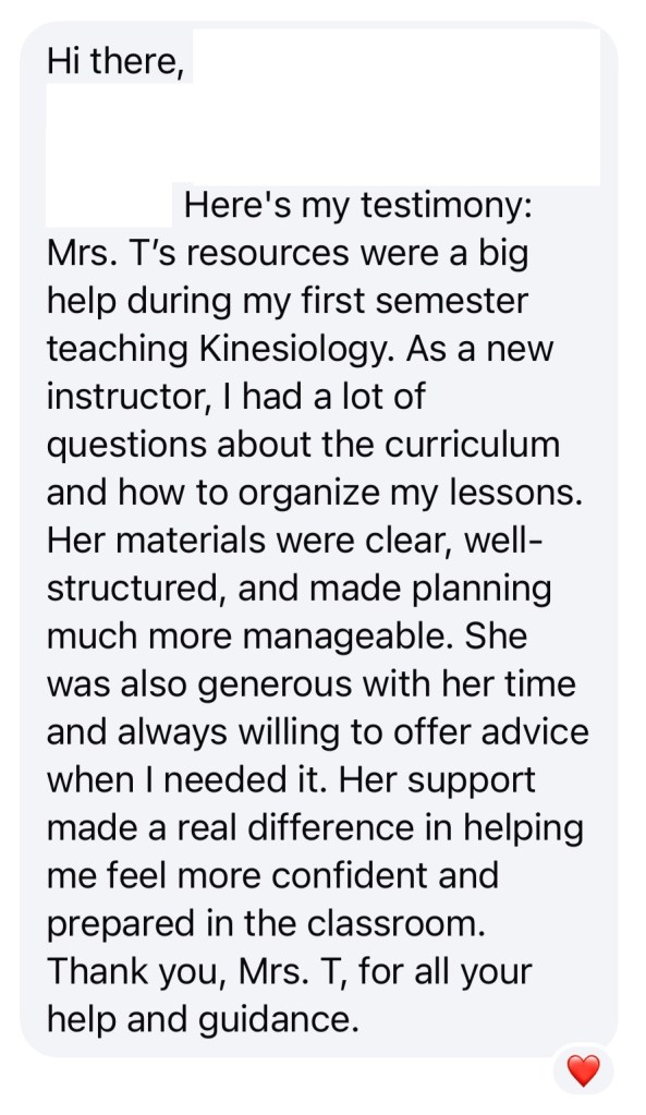 A: You’re welcome! Teachers who teach a relevant course (sport medicine, sport science, exercise science, etc.) may choose to join. There are overlaps in topics. Just know that the curriculum that we focus here is for Ontario, Canada.